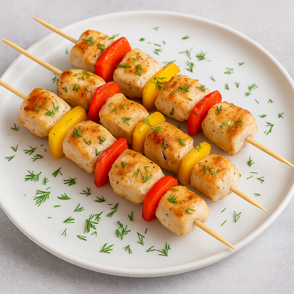 Saftige Hähnchenwürfel, bunt aufgespießt mit Paprikascheiben und einer frischen Dill-Marinade. Perfekt für den Grillabend oder den schnellen Ofen-Snack – und so einfach, dass sogar der Nachbar ohne Kochbuch glänzen kann!